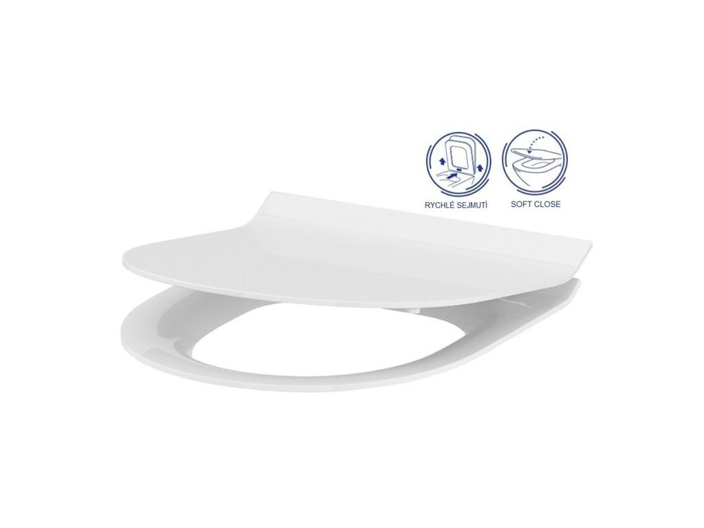 - SOFT CLOSE /volně padající/, s jednoduchým sejmutím a upevněním sedátka pomocí jednoho tlačítka.