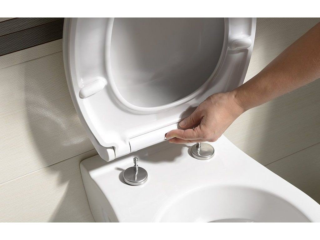 Závěsná WC mísa WC rimless MyJoys MY 1 /bez oplachového kruhu/ včetně sedátka z duroplastu se zavíráním soft-close a instalace /odejmutí sedátka je tzv. na jeden click/. Technologie rimless, na rozdíl od tradičních modelů, nemá vnitřní límec. Oplachovaná voda důkladně umyje celý vnitřní povrch a zanechá jej čistý. V těžko přístupných místech se tak nehromadí nečistoty a bakterie.