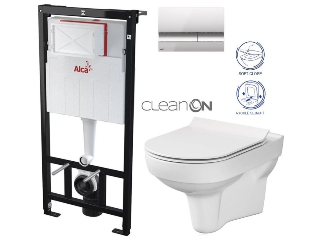 ALCA Sádromodul - předstěnový instalační systém s chromovým tlačítkem M1721 + WC CERSANIT CITY NEW CLEANON + WC SEDÁTKO SLIM AM101/1120 M1721 CI2