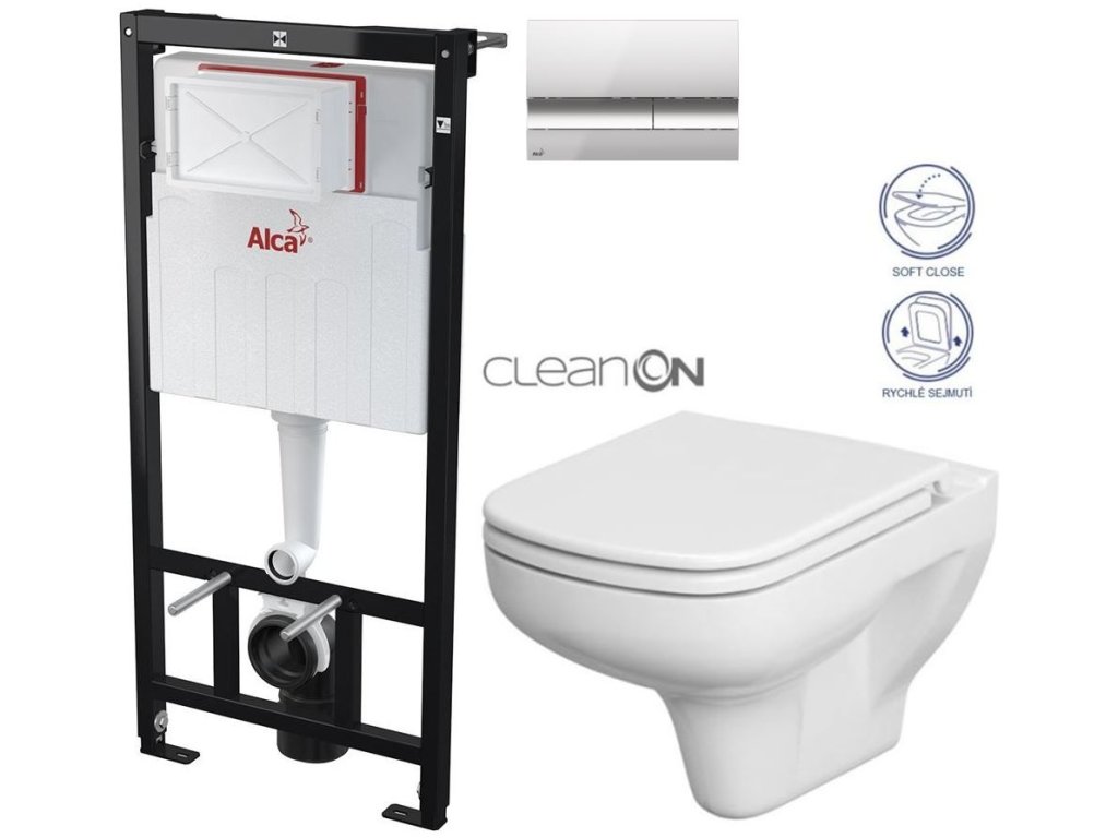 ALCA Sádromodul - předstěnový instalační systém s chromovým tlačítkem M1721 + WC CERSANIT CLEANON COLOUR + SEDÁTKO AM101/1120 M1721 CN1