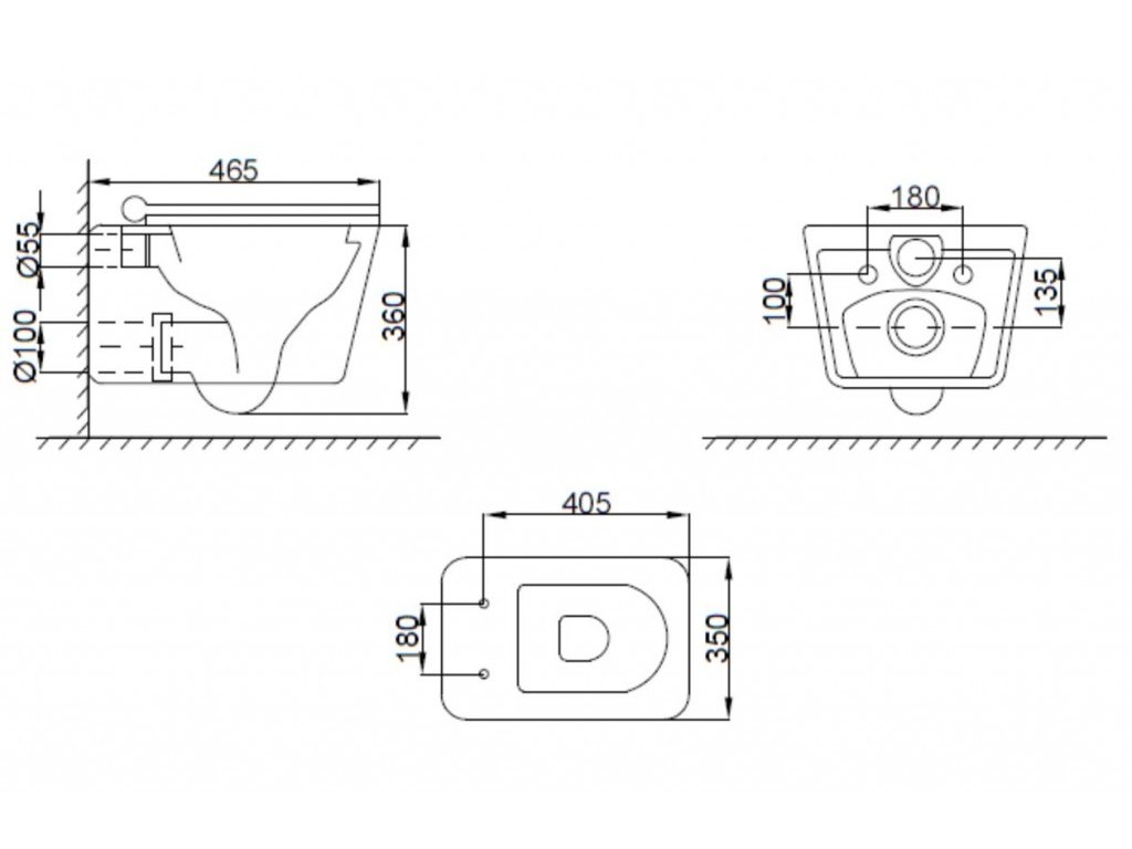 Pro montáž závěsného WC s připojovací roztečí 180 mm nebo 230 mm