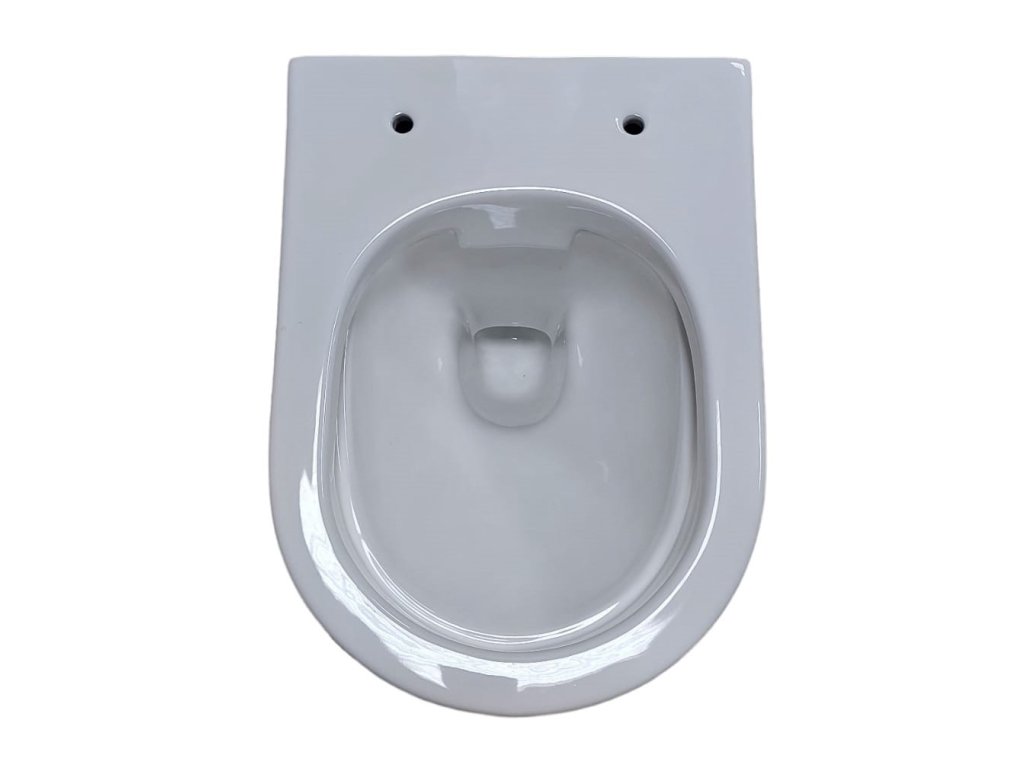 WC závěsná mísa TINOS /bez oplachového kruhu/. WC mísa je elegantního vzhledu s zadním odpadem. Funkce splachování 4 l.