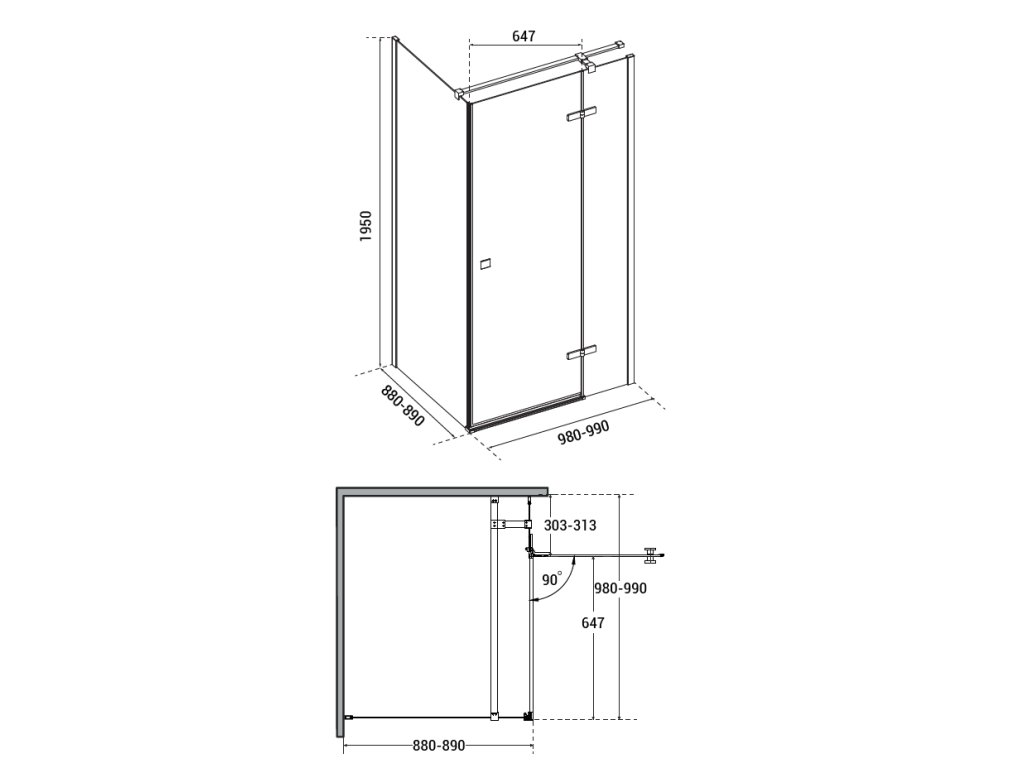 - 100 × 90 × 195 cm (montážní rozměr 98 - 99 × 88 - 89 cm)