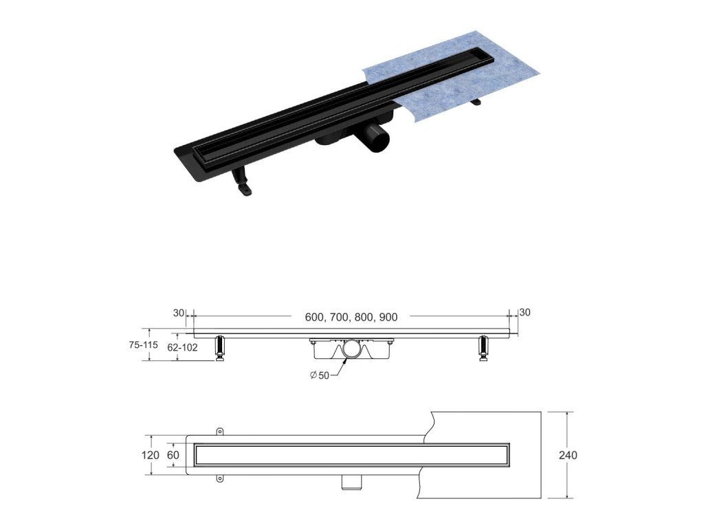 Kvalitně a moderně zpracovaný odtokový žlab. Tělo žlabu i vlastní rošt je vyroben z velice kvalitní nerezi a jsou oba s povrchovou úpravou v černé barvě. Rošt lze použít buď pro vložení dlažby, nebo jako pohledový (černá barva). Tento žlab obohatí každou koupelnu o nádech luxusu. Sada obsahuje: žlab se sifonem a nožičkami, rošt a hydroizolační pásku.