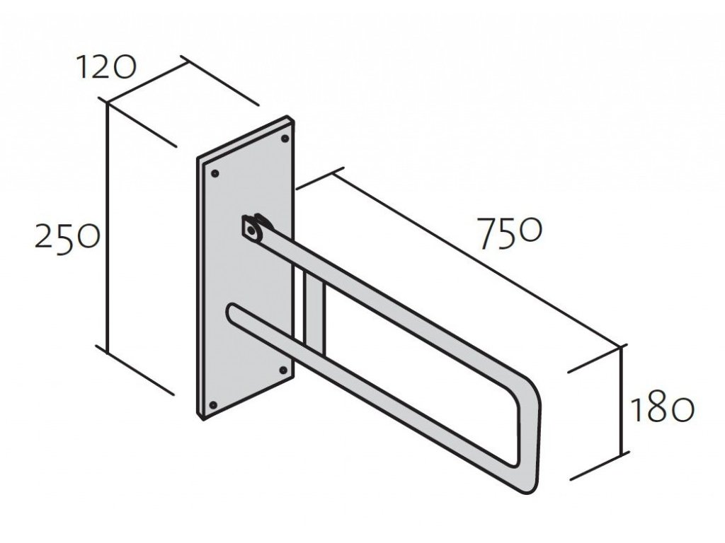 Doporučená výška montáže: 80 cm nad podlahou od horní části ramene madla. Maximální zatížení: 120 kg