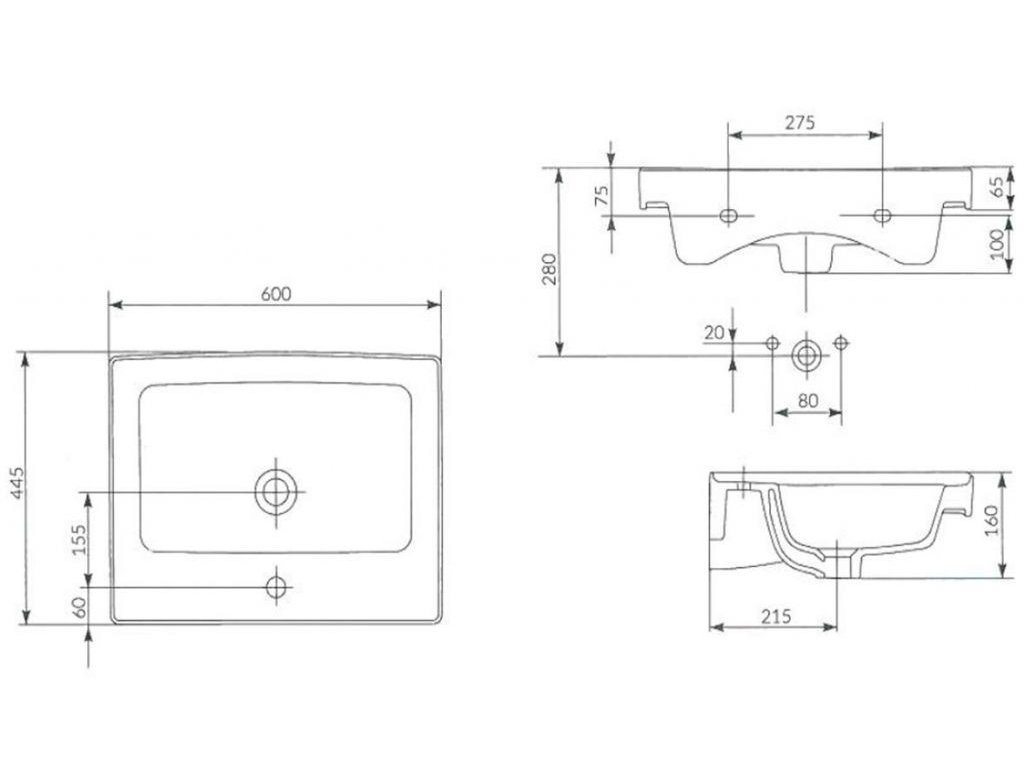 Nábytkové umyvadlo CREA 60 s přepadem a otvorem na armaturu.