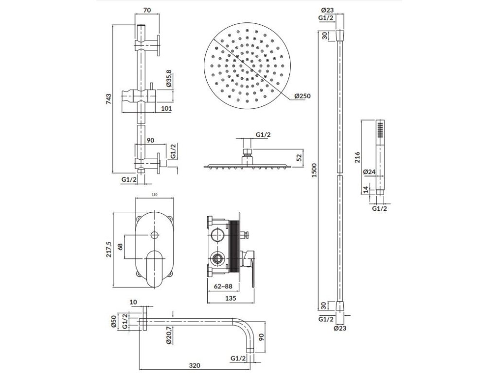 Sprchový podomítkový set z kolekce CREA je kompletním řešením do každé koupelny. Podomítková vanová/ sprchová baterie je vybavena 35mm keramickou hlavicí, která umožňuje plynulé nastavení proudu vody po celou dobu její životnosti. Sada obsahuje podomítkové těleso, sprchovou hlavici SLIM (0,2 cm) o průměru 25 cm z nerezové oceli se silikonovou úpravou Cersanit EasyCLEAN, 1funkční ruční sprchu o průměru 2,4 cm, PVC sprchovou hadici o délce 150 cm (schváleno WRAS) a tyč s posuvnou rukojetí (nerezová ocel) o délce 75 cm.