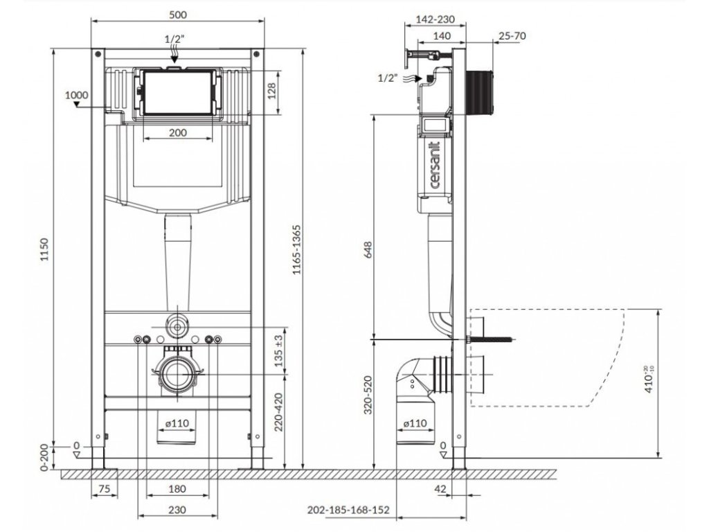SET C19: RÁM AQUA 50 PNEU QF + ZÁVĚSNÁ WC MÍSA ZEN BY CERSANIT OVÁLNÝ STREAMON SE SEDÁTKEM