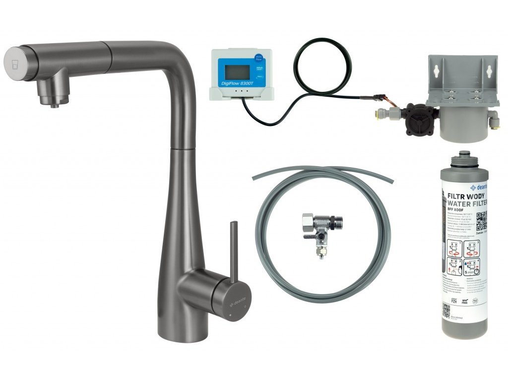 DEANTE - Eridan 1500 baterie kuchyňská, se sadou pro filtraci vody, s vytahovací hubicí; BREFD75M