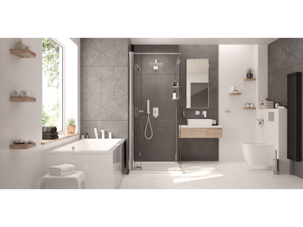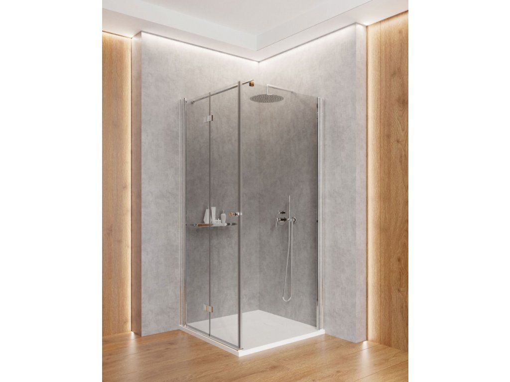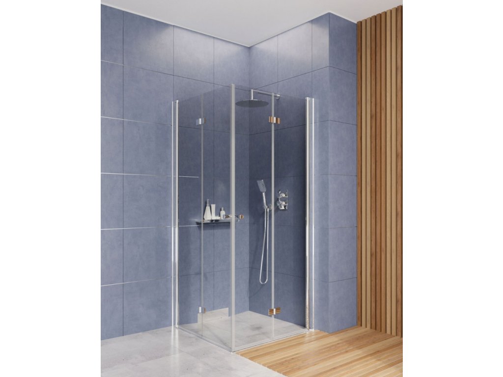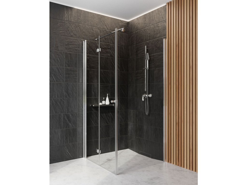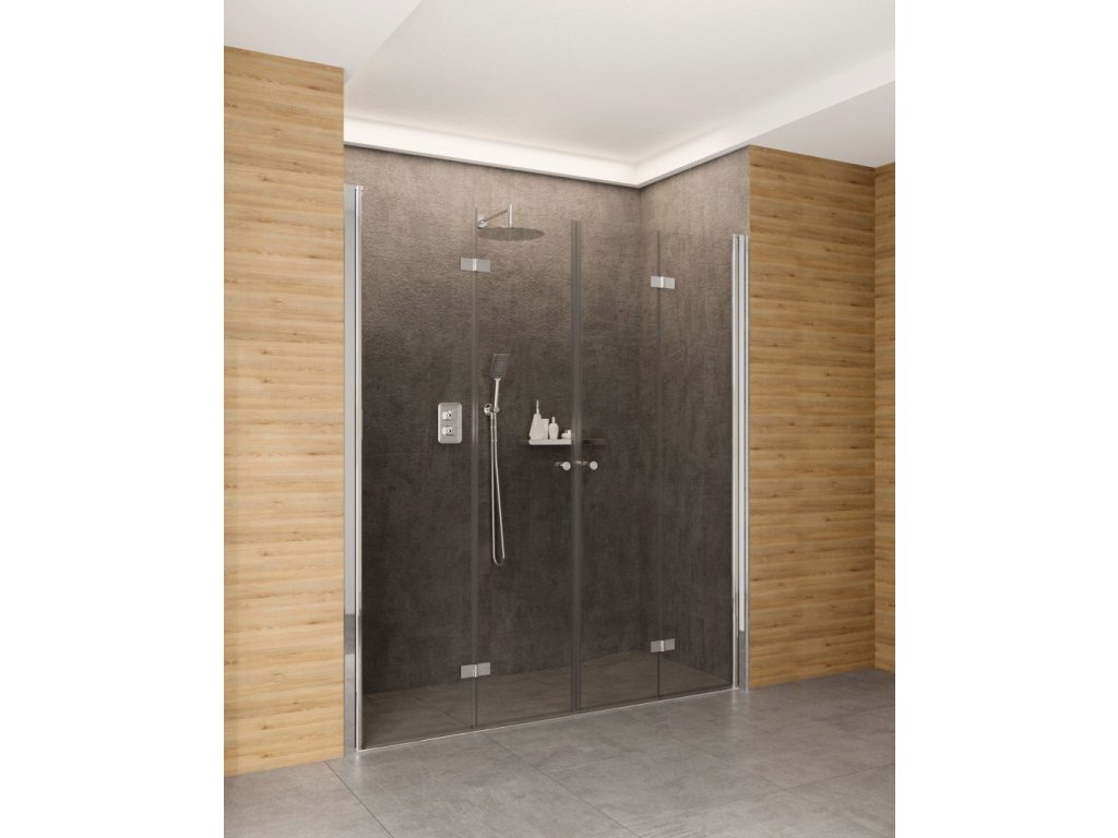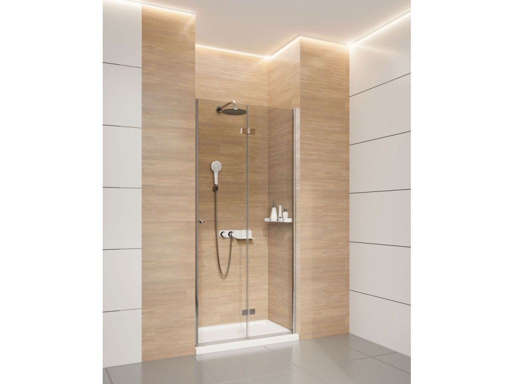 Minimalistické sprchové dveře lze použít jak do kabinek, tak do vestavěných výklenků. Průhledné sklo opticky zvětšuje místnost. Klasické provedení dodává koupelně rafinovaný vzhled. Myslíme i na bezpečnost členů domácnosti, proto sklo podrobujeme procesu kalení, kdy se sklo stává tvrdším, pružnějším a odolnějším. Sprchové dveře jsou také pokryty vrstvou Active Cover, která má hydrofobní vlastnosti. Nejsou zde žádné nevzhledné skvrny a čištění je potřeba mnohem méně často. Kompatibilní s produkty řady Kerria Plus. Prvek je široký 90 cm. Sprchové dveře jsou skládací. Vyznačují se velmi tichým chodem, a to díky magnetickému těsnění, které změkčuje zavírání. Panty byly v jedné rovině se sklem, což je zvláště důležité při vývoji prohlubní.