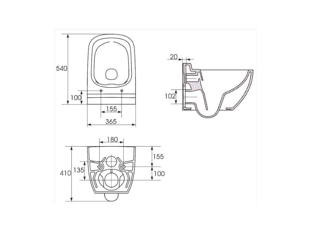 Závěsná mísa CASPIA NEW CLEAN ON /bez oplachového kruhu/ se zadním odtokem, funkce splachování 2/4l, 25,/5l nebo 3/5l.