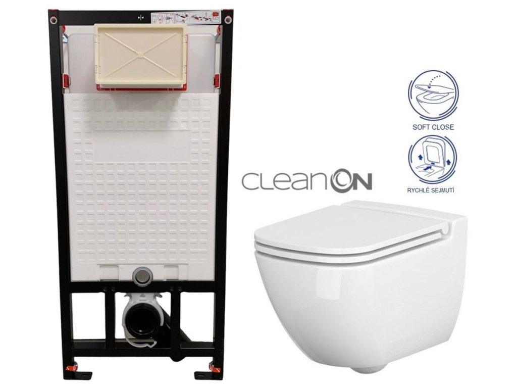 DEANTE Podomítkový rám, pro závěsné WC mísy bez tlačítka + WC CERSANIT CLEANON CASPIA + SEDÁTKO CST_WC01 X CP1