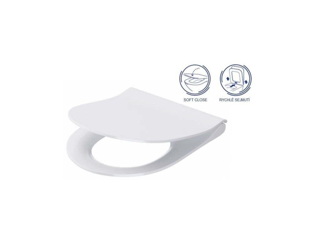 Součástí mísy je tenké sedátko z duroplastu s měkkým zavíráním s funkcí snadného uvolnění.