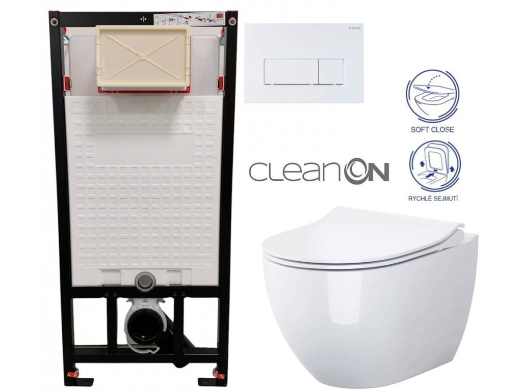 DEANTE Podomítkový rám, pro závěsné WC mísy + SLIM tlačítko bílé + WC CERSANIT ZEN CLEANON + SEDÁTKO CST_WC01 A51P HA1
