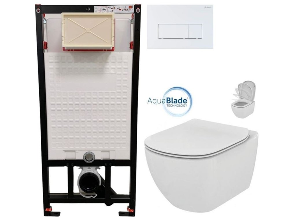 DEANTE Podomítkový rám, pro závěsné WC mísy + SLIM tlačítko bílé + WC Ideal Standard Tesi se sedátkem SoftClose, AquaBlade CST_WC01 A51P TE1
