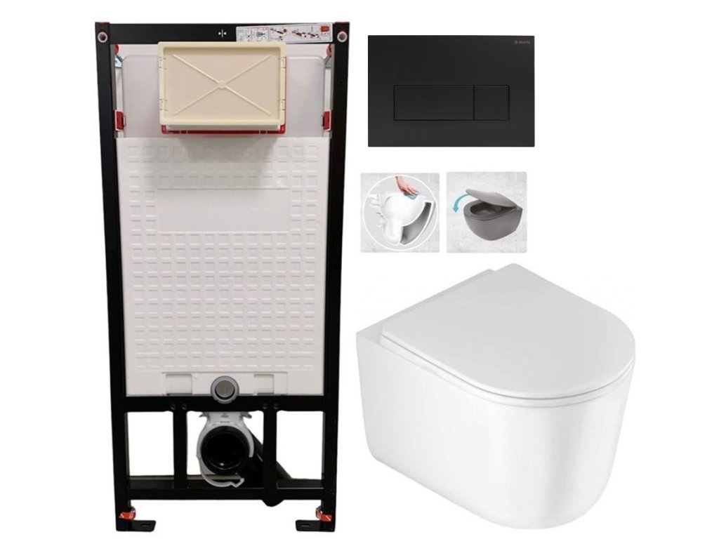DEANTE Podomítkový rám, pro závěsné WC mísy + SLIM tlačítko černé + WC DEANTE Jasmin se sedátkem RIMLESS CST_WC01 N51P JA1