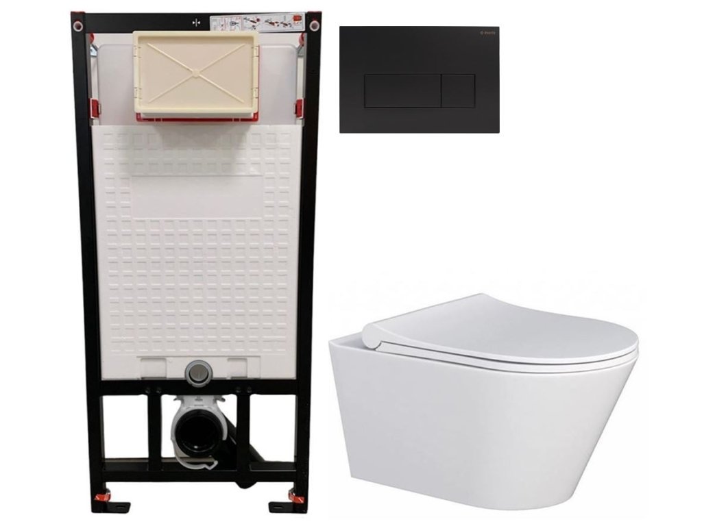 DEANTE Podomítkový rám, pro závěsné WC mísy + SLIM tlačítko černé + WC MYJOYS MY1 + SEDÁTKO CST_WC01 N51P MY1