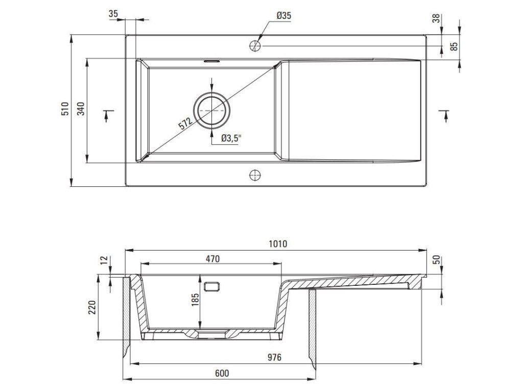 - POZORNOST! Před vyříznutím otvoru v pracovní desce pro instalaci keramického dřezu zvažte skutečné rozměry zakoupeného modelu.
