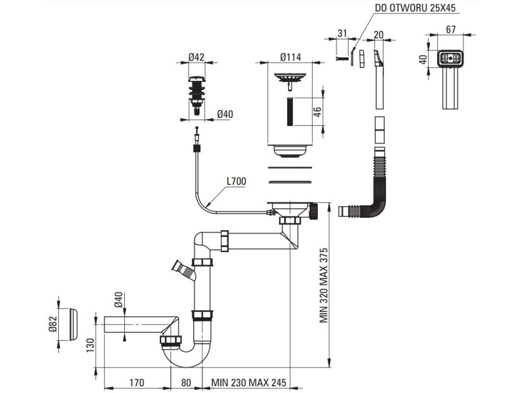 - Prostorově úsporný sifon pro usnadnění např. třídění odpadu