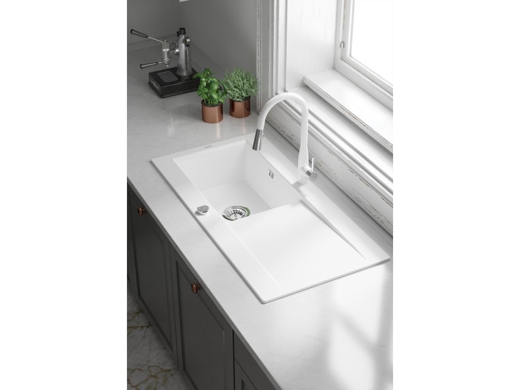 Keramický dřez byl vyroben z vysoce kvalitní suroviny přírodního původu. Díky tomu odolává vysokým teplotám a jejich rychlým změnám. Navíc časem neztrácí barvu a lesk a tlumená elegantní barva se skvěle hodí k ostatním prvkům výbavy. Praktický 1-miskový dřez s odkapávačem je perfektním řešením v malých kuchyních a studiových bytech s kuchyňským koutem. Funguje i jako sušička, profilovaný povrch účinně odvádí vodu stékající z nádobí nebo umytého jídla.