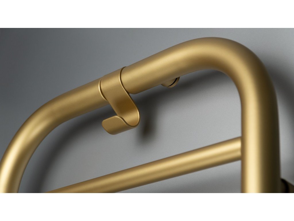Průtokový ohřívač typu "žebřík", určený k instalaci do koupelen, slouží k vytápění místnosti a sušení ručníků. Výška 85 cm.