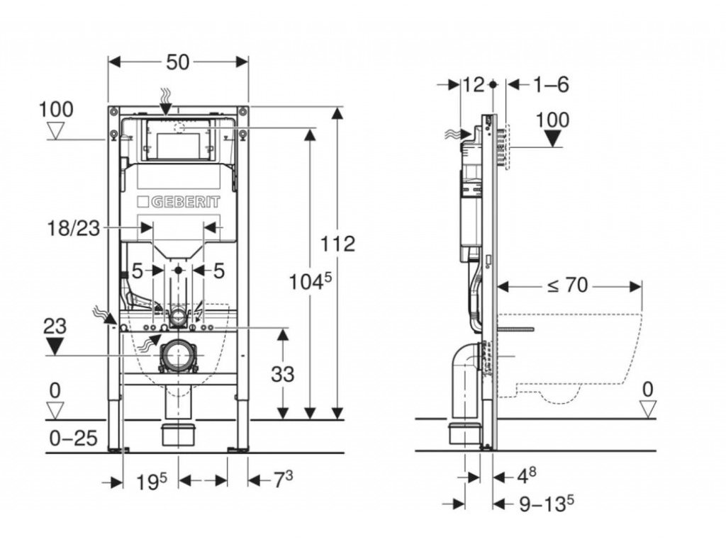 - pro závěsná WC s připojovacími rozměry podle EN 33 a přesahem do 70 cm