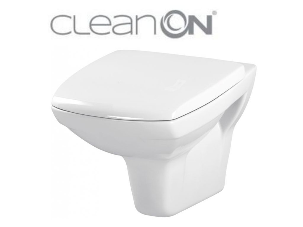 WC závěsná mísa CARINA NEW CleanOn elegantního vzhledu s horizontálním odpadem, funkcí splachování 2,5/5, 3/5l.