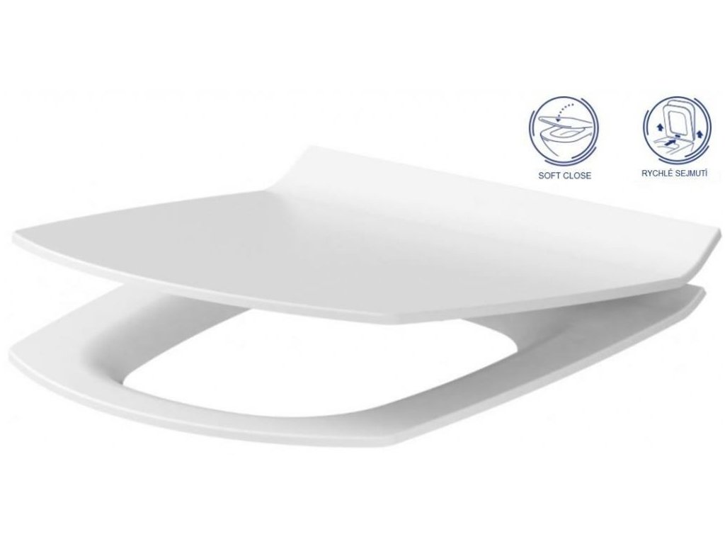 Tenké WC sedátko SLIM s pomalým zavíráním SOFT CLOSE, s jednoduchým sejmutím a upevněním sedátka pomocí jednoho tlačítka EASY OFF ONE BUTTON.