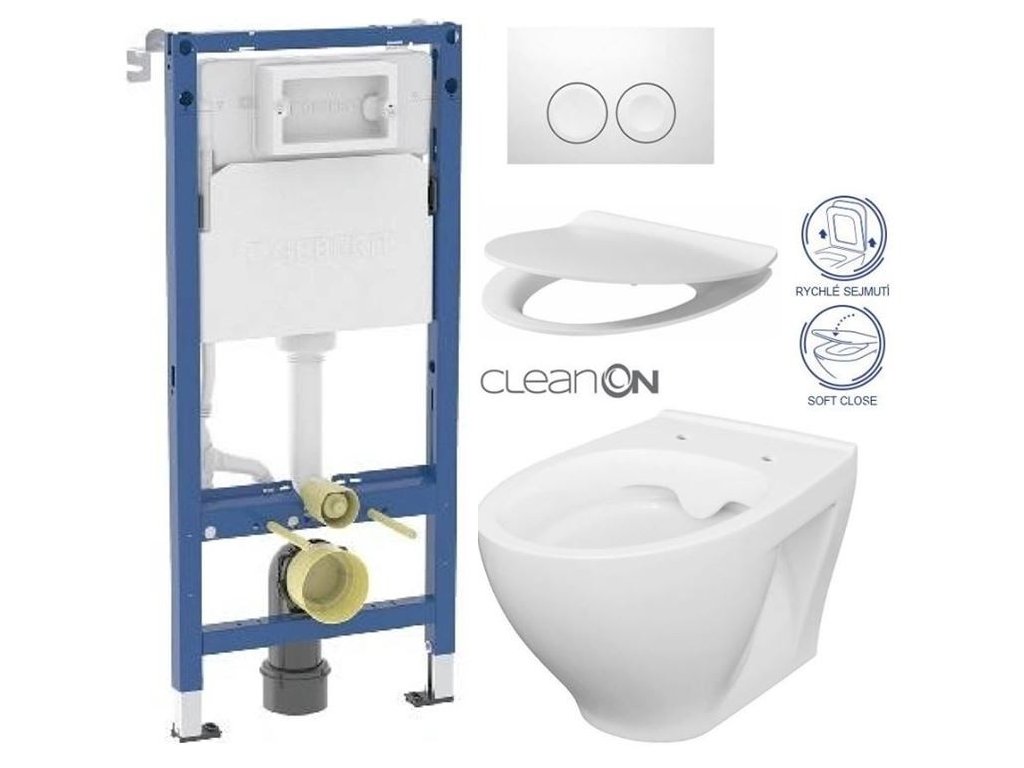 GEBERIT DuofixBasic s bílým tlačítkem DELTA21 + WC CERSANIT CLEANON MODUO + SEDÁTKO 458.103.00.2 21BI MO1