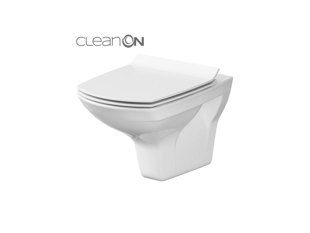 WC závěsná mísa CARINA NEW CleanOn elegantního vzhledu s horizontálním odpadem, funkcí splachování 2,5/5, 3/5l.
