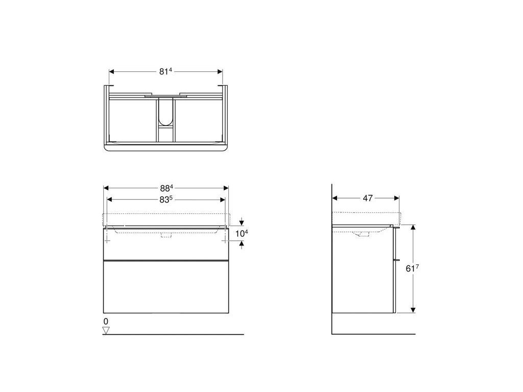 Geberit Smyle Square skříňka pod umyvadlo 88,4x47x61,7 cm, 2x zásuvka, pískově šedá lesk/pískově šedá mat (500.354.JL.1)
