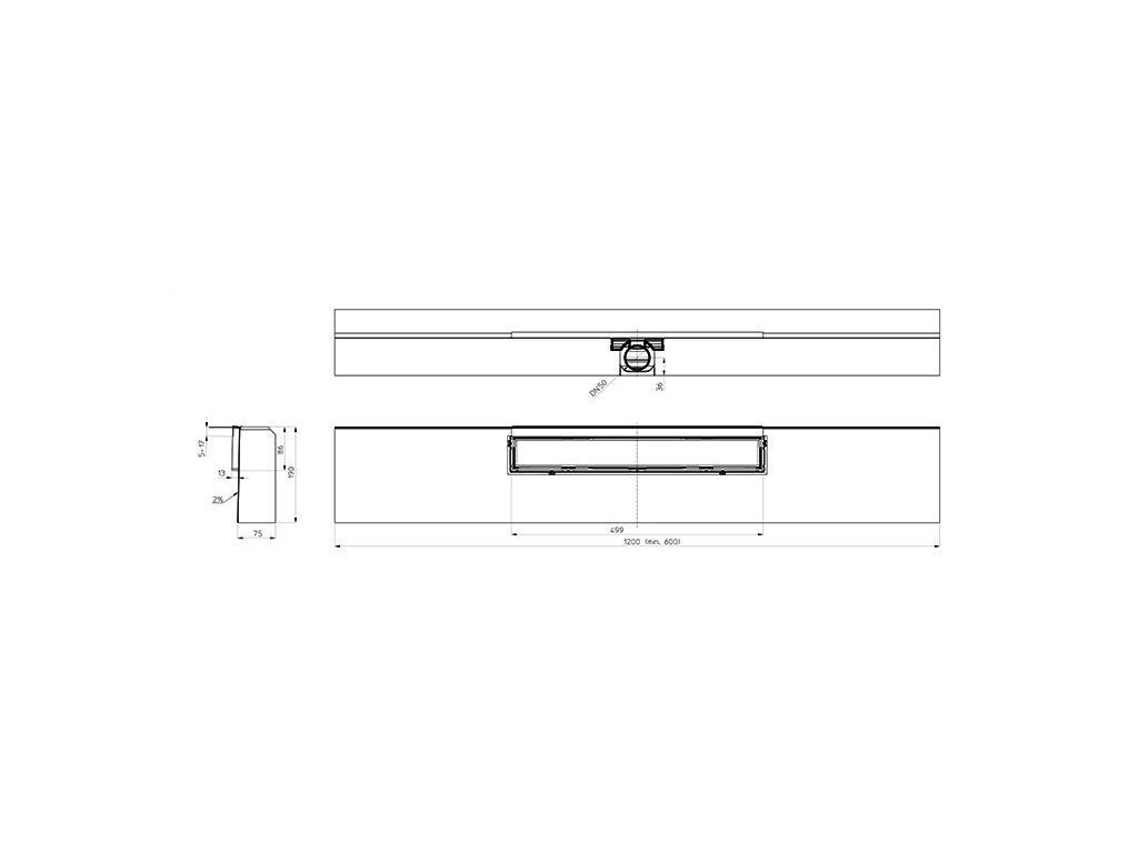 - Směr připojení odtokuje pevný a je orientován do prostoru podlahy, délku modulu lze libovolně upravovat řezáním (1200- 600 mm)