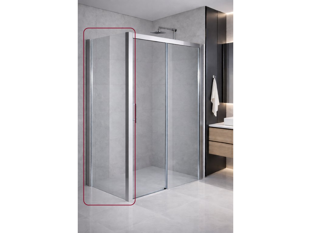 HOPA - Pevná stěna ESTRELA - Chrom/Leštěný hliník (ALU), Pevná stěna - 80 cm, zavírání univerzální levé / pravé, čiré bezpečnostní sklo - 6 mm