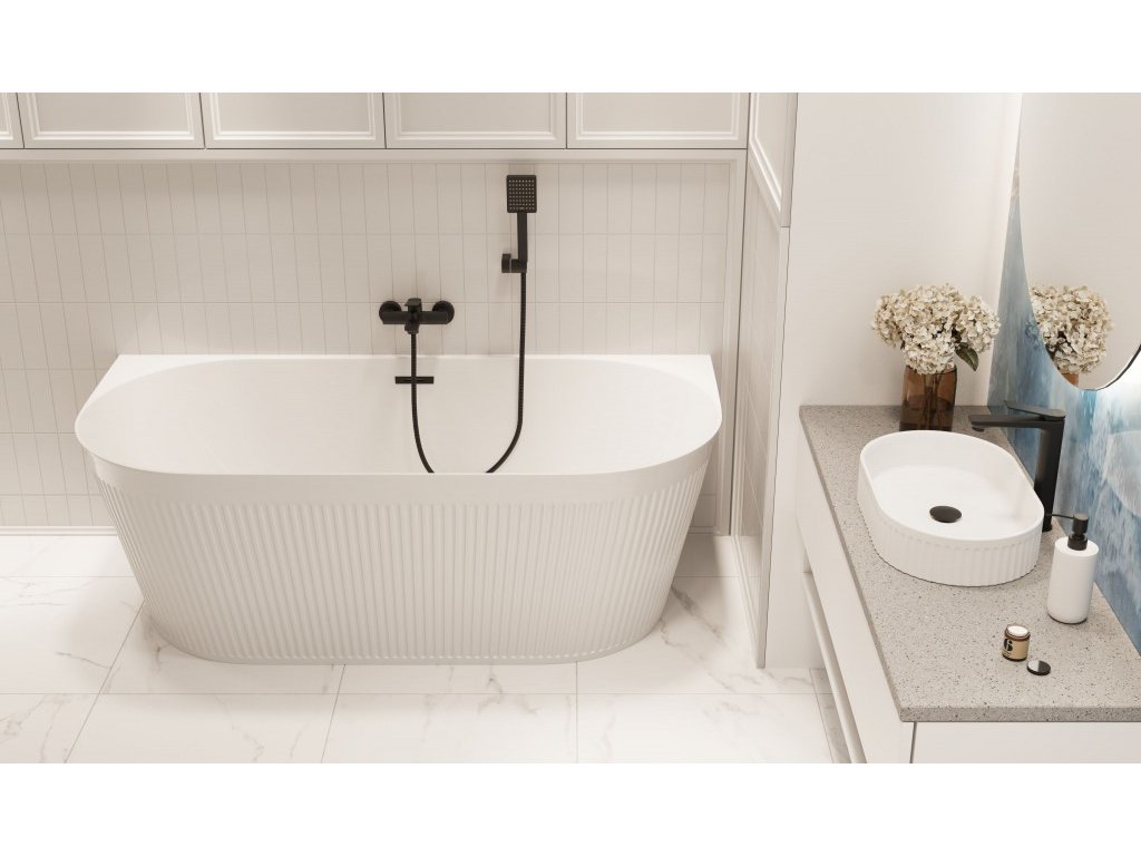 Nástěnný set MINI PATRAS - nastavitelný jednobodový držák ruční sprchy s 1-funkční ruční sprchou, se systémem proti usazování vodního kamene ANTI-CALC a plastovou hadicí délky 150 cm.