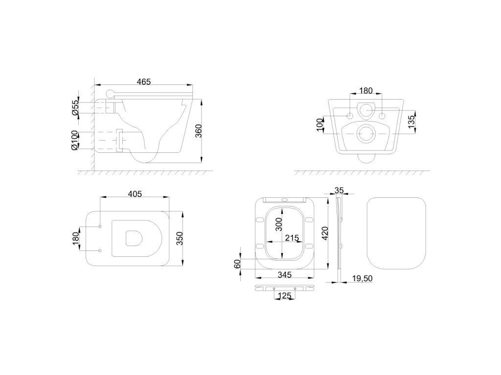 WC závěsná mísa PAROS /bez oplachového kruhu/. WC mísa je elegantního vzhledu s zadním odpadem. Funkce splachování 4 l.