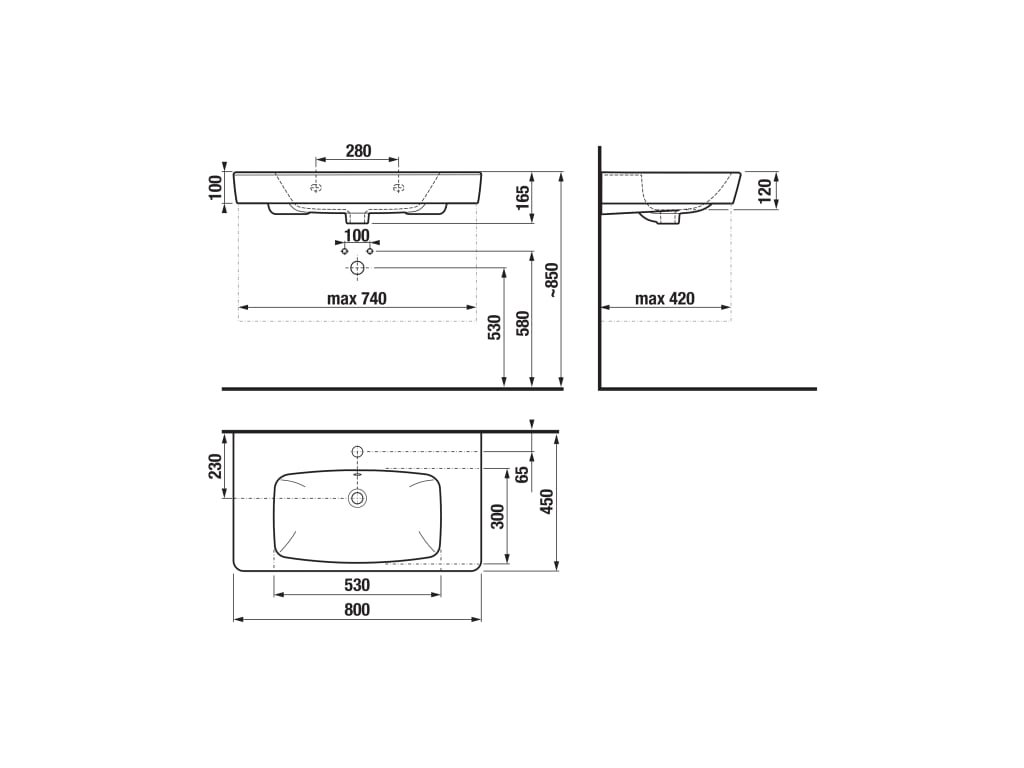 | Umístění umyvadlové mísy: | Uprostřed |