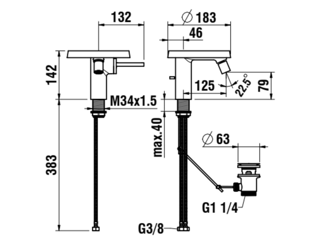 Bidetová páková baterie (Disk), průtok 5,7 l/min vč. 1 plastového disku v provedení transparent s automatickou výpustí. Automatická zátka. Pevné raménko. Vnitřní mechanismus s pákovým ovládáním. Včetně přívodních flexibilních hadic.Doplňkové parametry