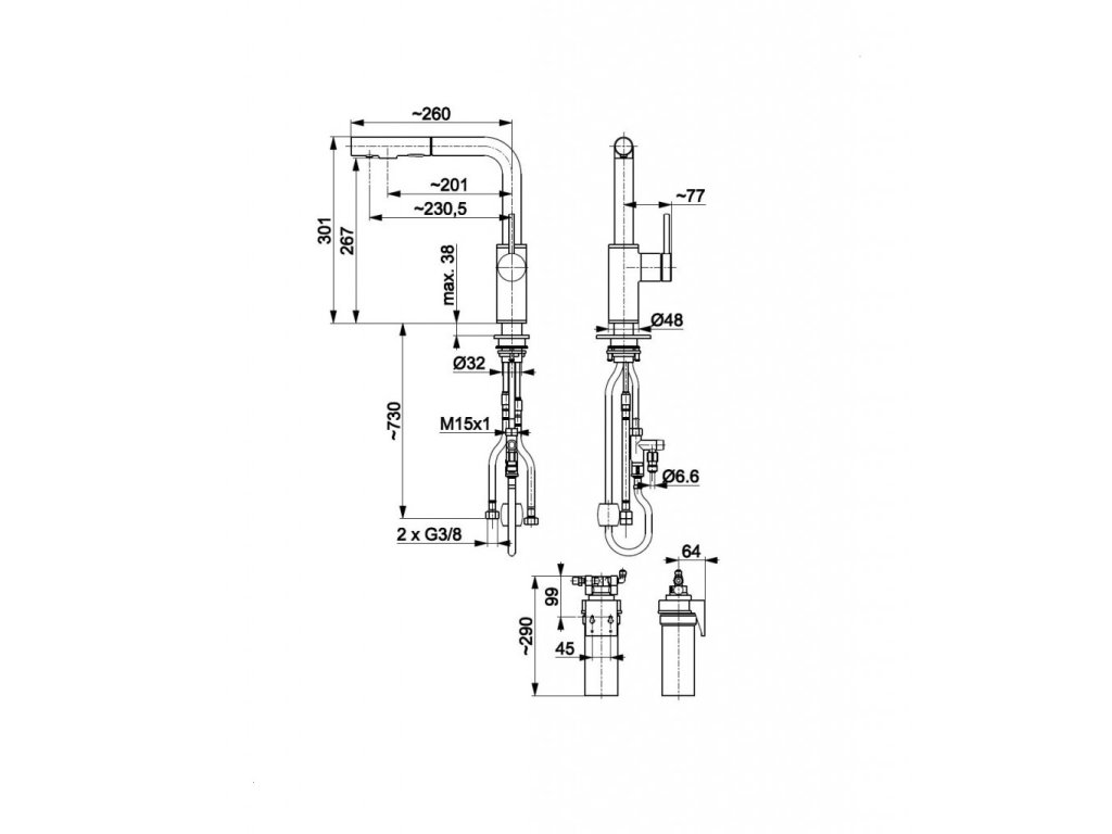 | Průtok vody [l/min]: | smíšená voda 6 / filtrovaná voda 2.5 |