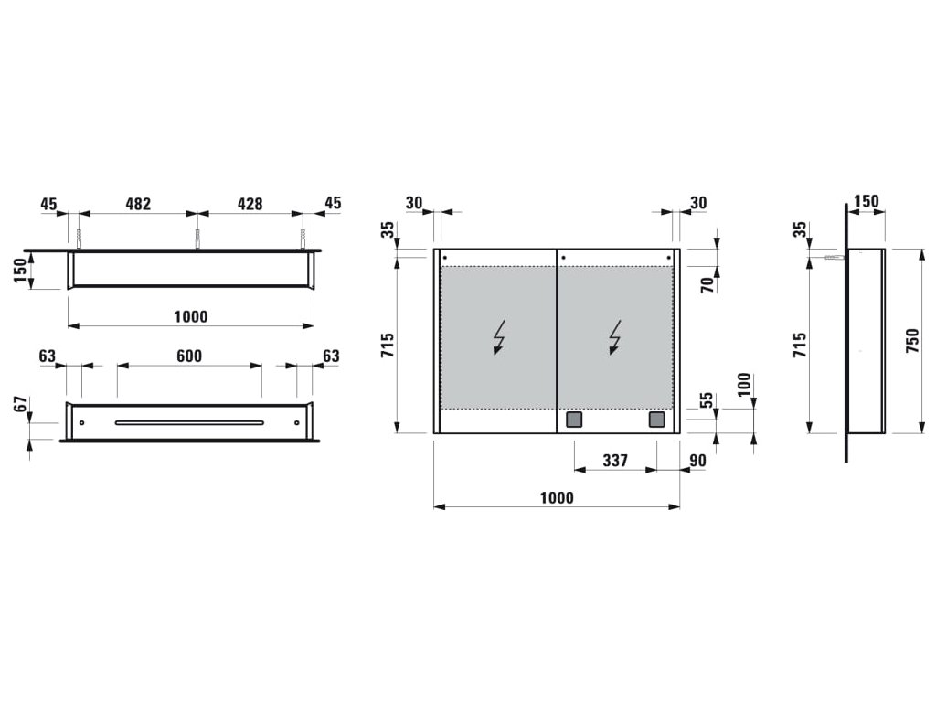 Hliníková zrcadlová skříňka, podélné LED osvětlení, el. zásuvka a senzorový spínač osvětlení. Integrovaná elektrická zásuvka.Doplňkové parametry