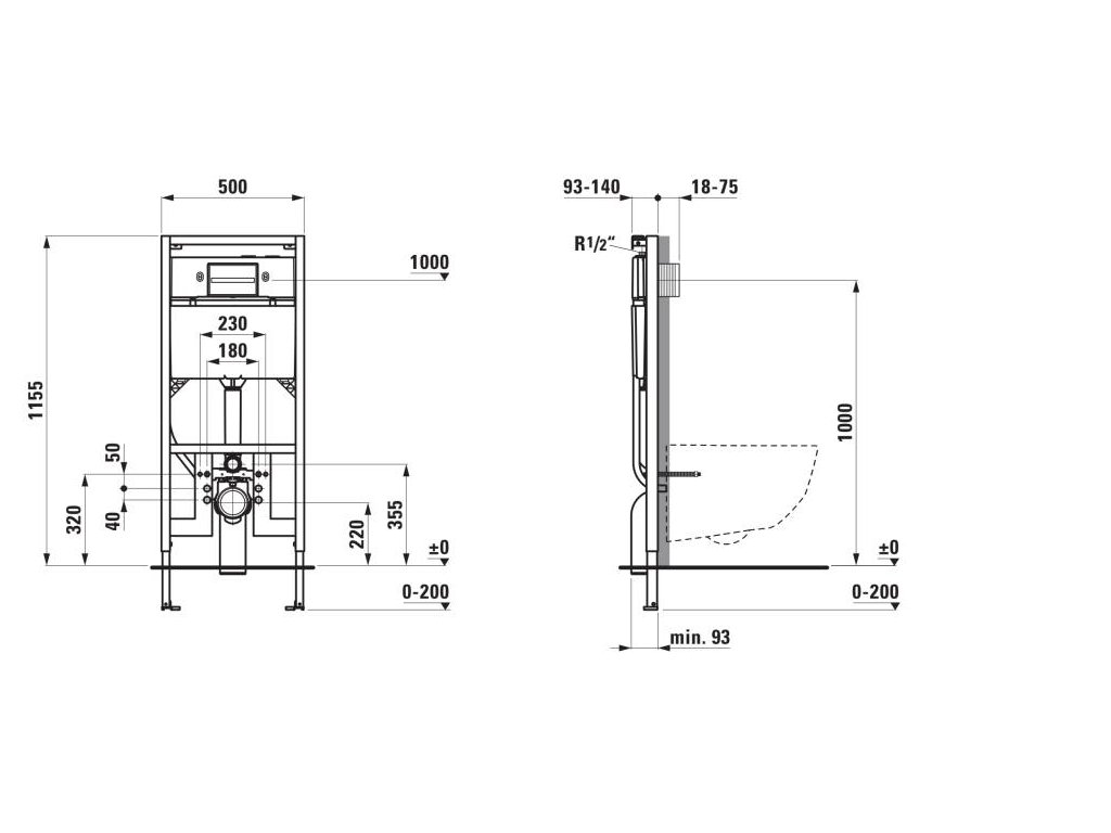 LAUFEN INEOLINK rámový podomítkový modul SLIM (90 mm) se zabudovanou hadičkou pro přívod vody, do lehké příčky pro závěsné WC, H9201100000001
