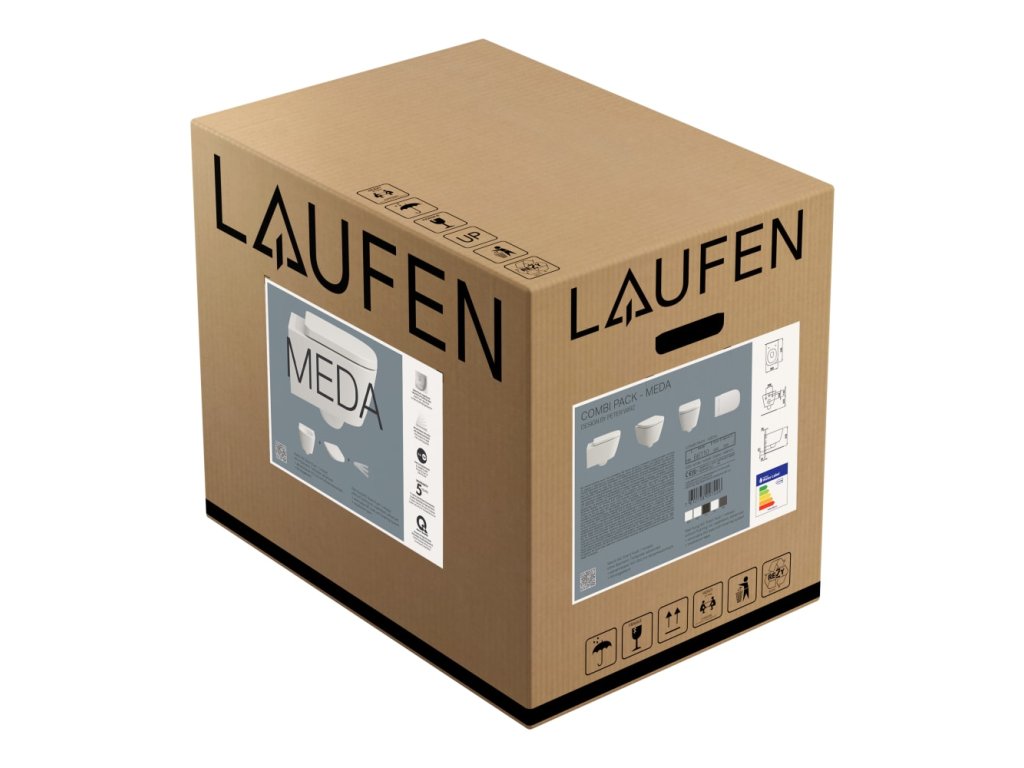 LAUFEN MEDA - závěsné WC COMBI PACK, Silent flush, rimless, hluboké splachování. Obsahuje závěsné WC rimless advanced, sedátko s poklopem se zpomalovacím systémem a sadu zvukově izolačních podložek mezi WC a stěnu. (H8661100000001)