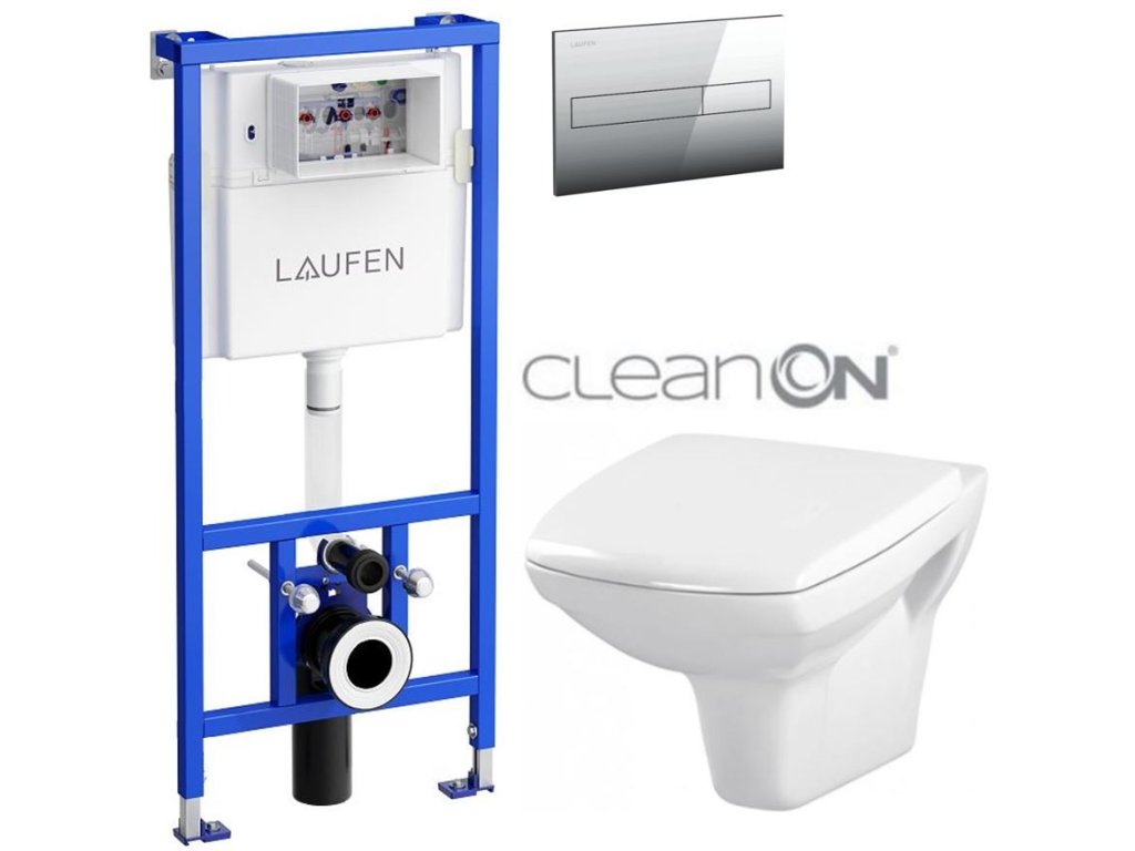 LAUFEN Rámový podomítkový modul CW1 SET s chromovým tlačítkem + WC CERSANIT CLEANON CARINA + SEDÁTKO H8946600000001CR CA1