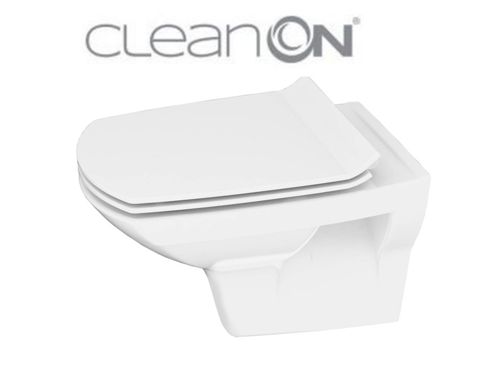 WC závěsná mísa CARINA NEW CleanOn elegantního vzhledu s horizontálním odpadem, funkcí splachování 2,5/5, 3/5l.