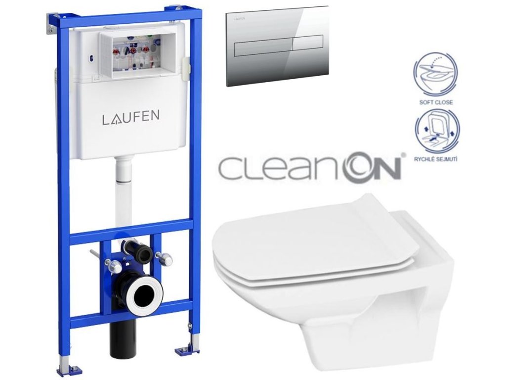 LAUFEN Rámový podomítkový modul CW1 SET s chromovým tlačítkem + WC CERSANIT CLEANON CARINA + SEDÁTKO H8946600000001CR CA3