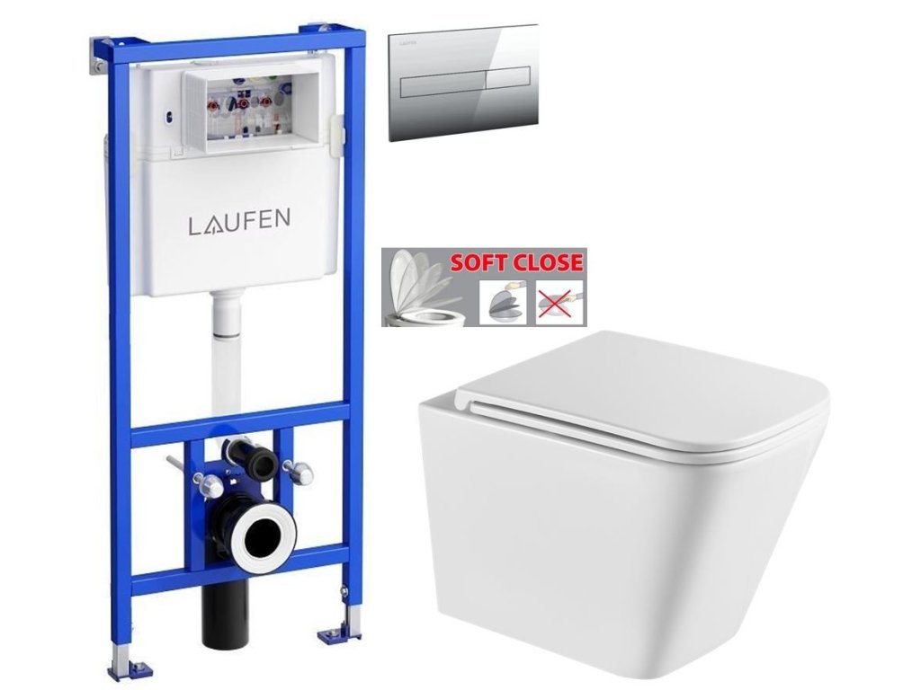 LAUFEN Rámový podomítkový modul CW1 SET s chromovým tlačítkem + WC INVENA FLORINA WITH SOFT, včetně soft/close sedátka H8946600000001CR FL1