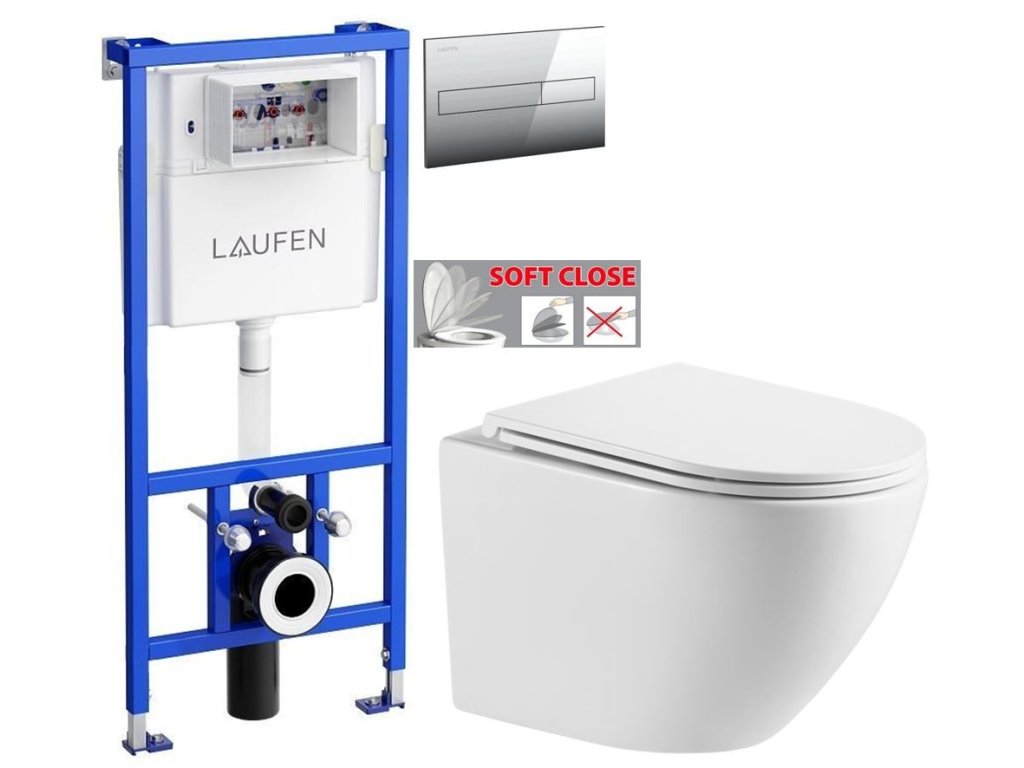 LAUFEN Rámový podomítkový modul CW1 SET s chromovým tlačítkem + WC INVENA LIMNOS WITH SOFT, včetně soft/close sedátka H8946600000001CR LI1