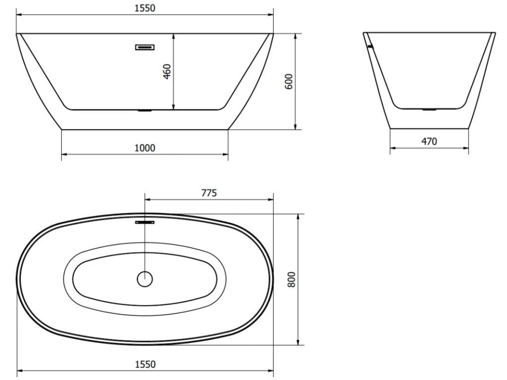 MEXEN - ERIS volně stojící vana 155x80, bílá bez krytky přepadu a zátky 53441558000-SS