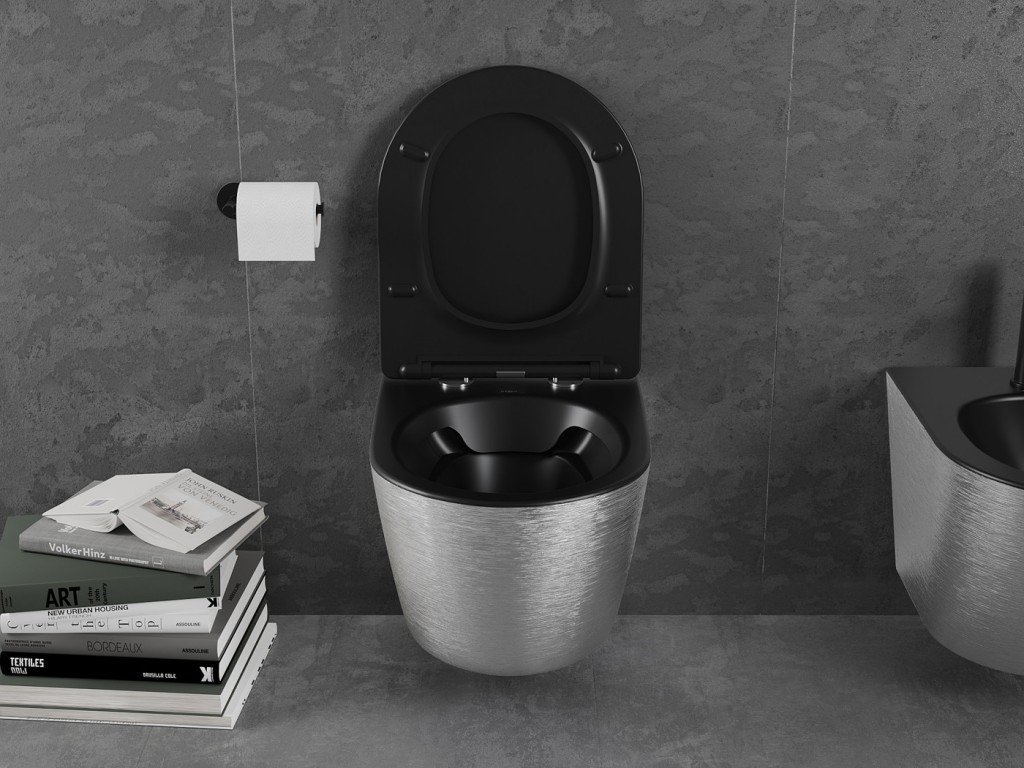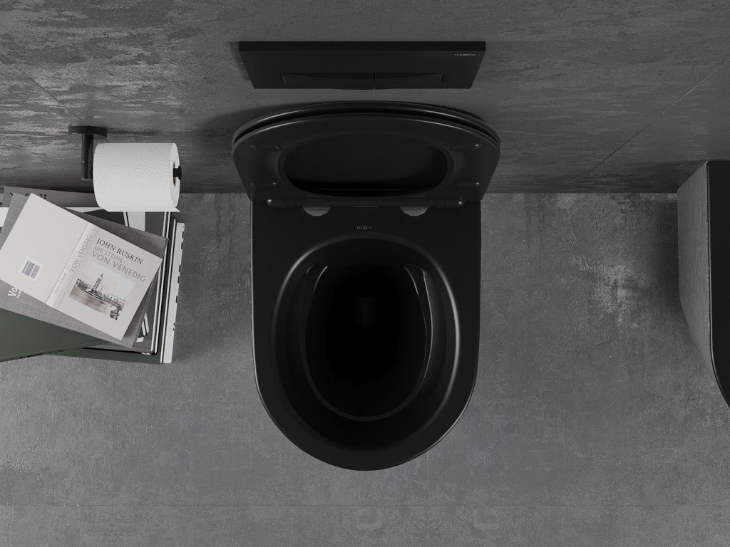 MEXEN - Lena Závěsná WC mísa včetně sedátka s slow-slim, duroplast, černá mat / stríbrný vzor 30224073