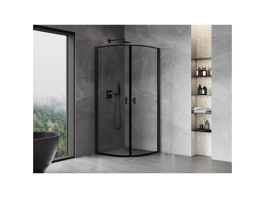 MEXEN - MIST dveřní část čtvrtkruhová (2d) 70x70x200 cm 6mm černá, okraj 8A31-070-070-70-70