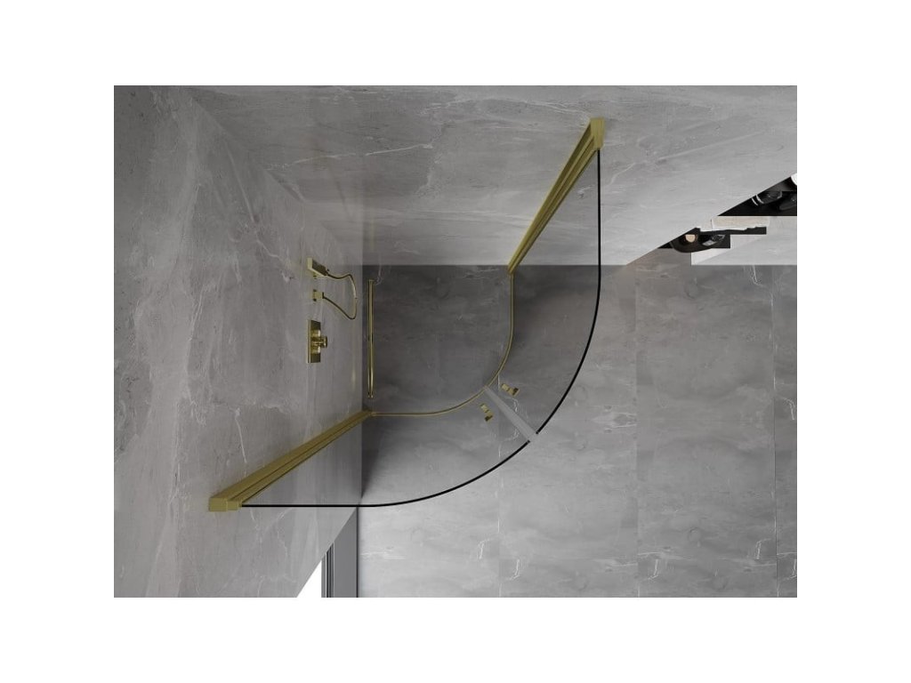 MEXEN - MIST dveřní část čtvrtkruhová (2d) 70x70x200 cm 6mm zlatá kartáčovaná, čirá 8A31-070-070-55-00